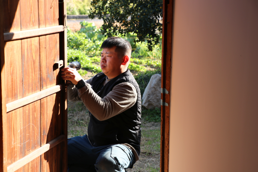 ↑建具屋さんが既存の扉の調整を行ってくださっていました。