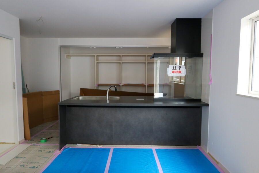 ↑ついにシステムキッチンが入りました!カウンターもついていて広々♪