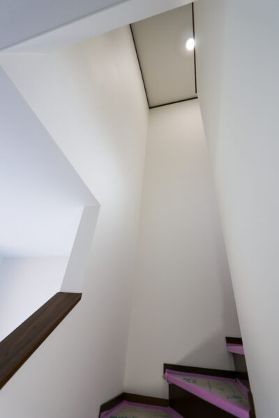 ↑階段のクロスもピシッと綺麗に。