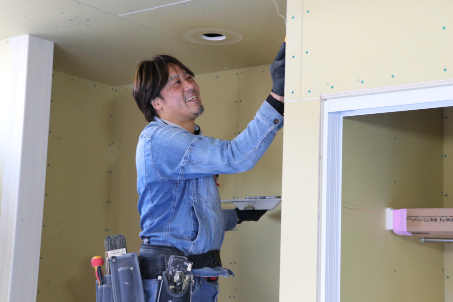 ↑パテ作業してくださったクロス屋さんが作業してくださいました!