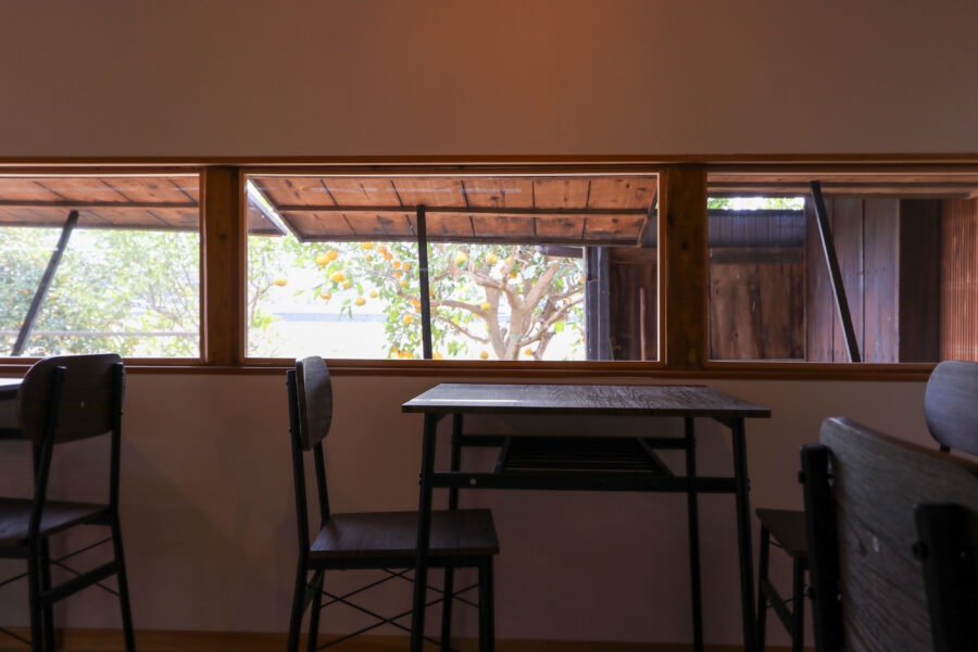 格子を取り外しガラスサッシを入れることで、食事をしながら景色も楽しめるような仕様に。