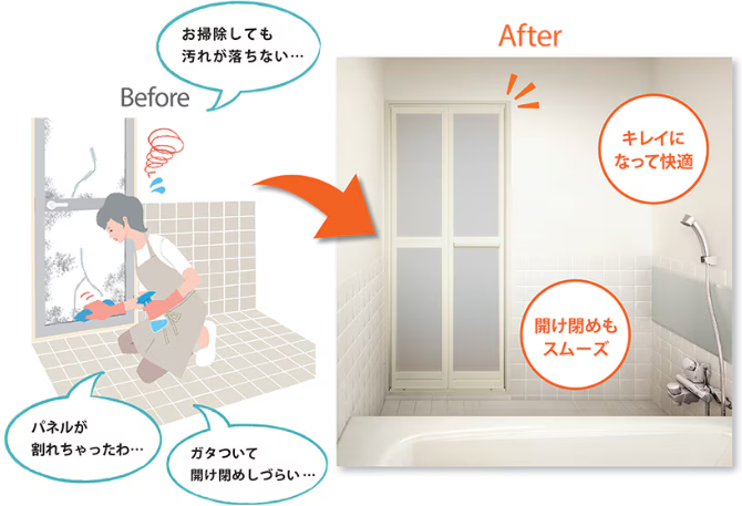 浴室ドアの動きが悪くなってきたり、掃除がしにくいなと感じている方におすすめです。