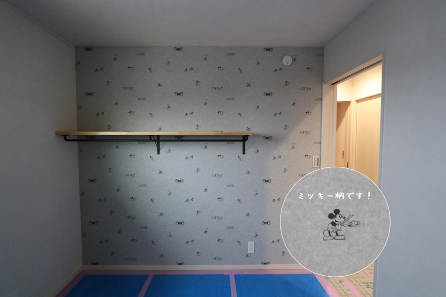 ↑ディズニー好きの奥様。寝室には先ほどのウォークインとは違うディズニー柄のクロスを採用!