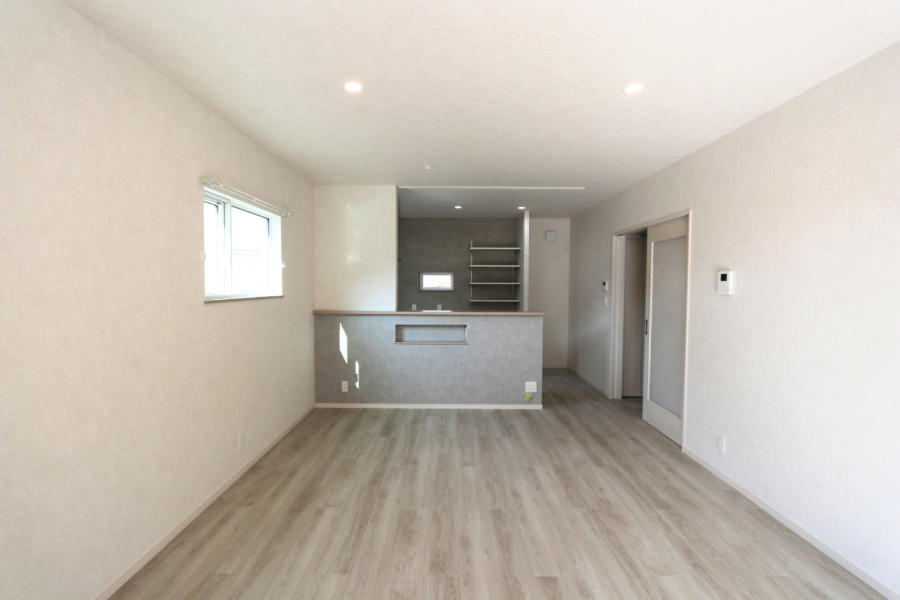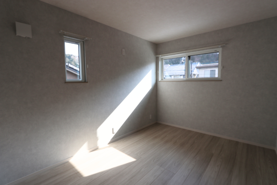↑二部屋設けた洋室はシンプルなグレージュや白色のクロスを使用しました。