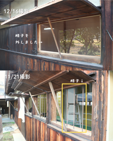 ↓窓部分は元々窓がなく格子だけついていたので、格子を外しサッシを入れました。