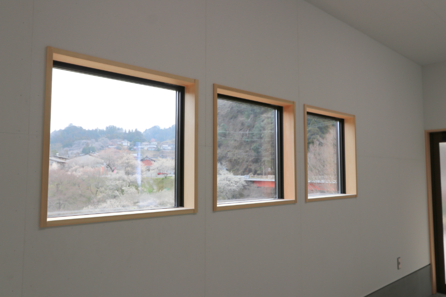 作業場の窓枠や建具枠には、無垢のヒノキを使用しています。